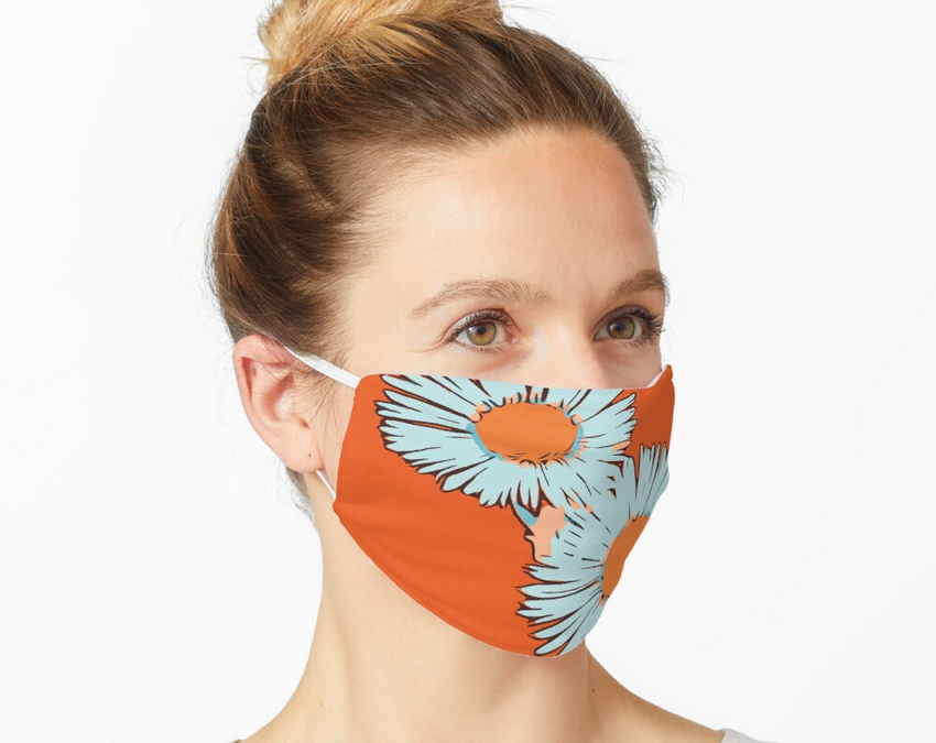 Frau-mit-Mund-Nase-Schutz gegen Corona Virus Pandemie bei Redbubble